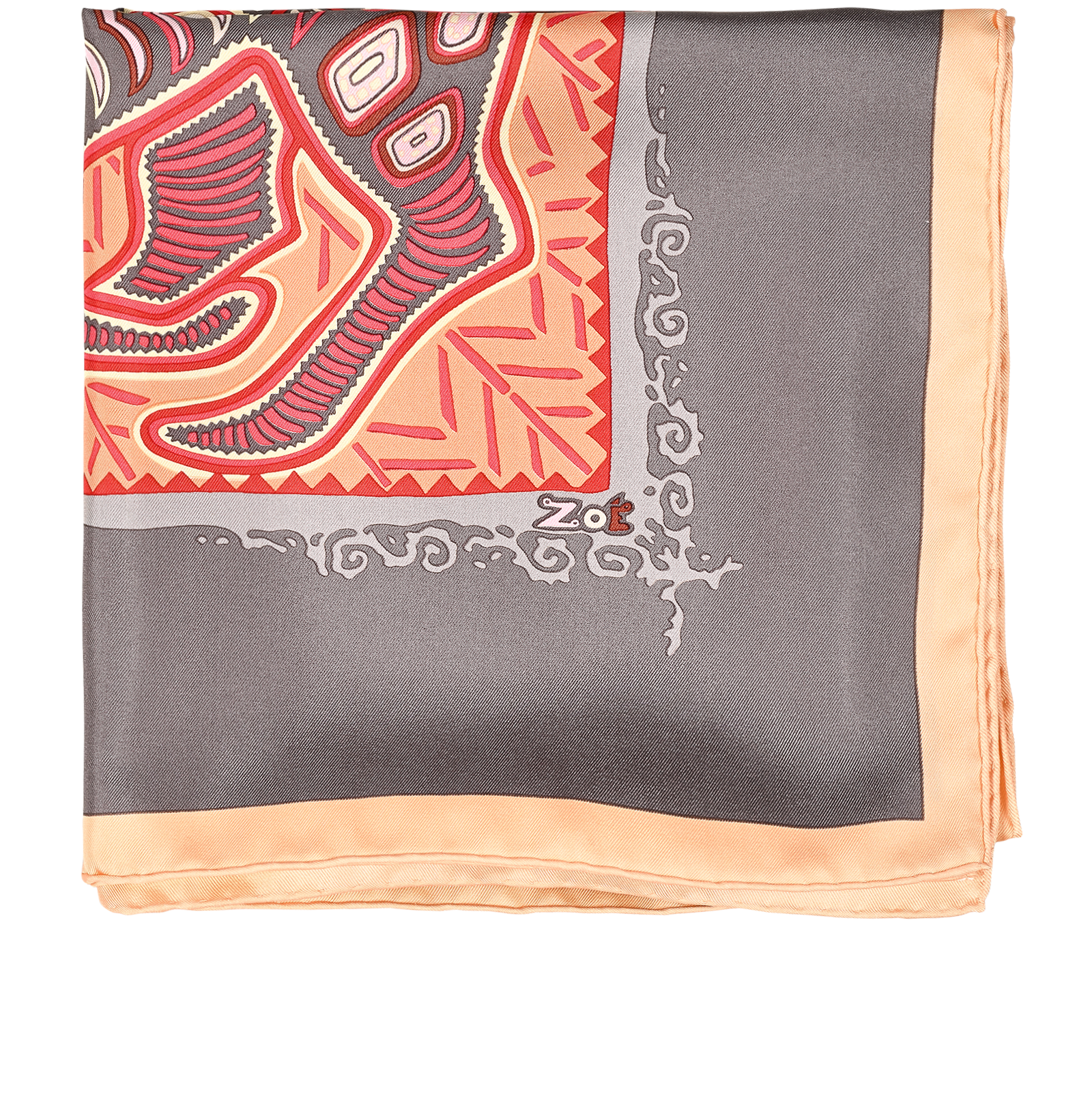Hermes Legende Kuna Scarf, £295, Accessories, Grey/Orange, Silk, Front view