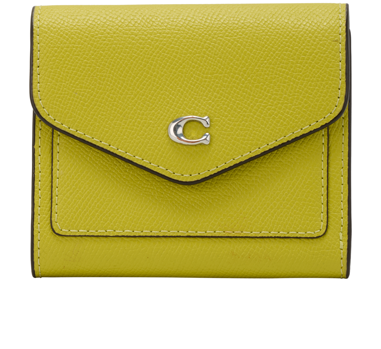 This Coach Wyn Wallet is a compact and elegant envelope - style wallet crafted from scratch - resistant crossgrain leather. It features snap closure and signature "C" hardware. It has 8 credit card slots on the interior with a full-length bill compartment and a coin pocket on the exterior.