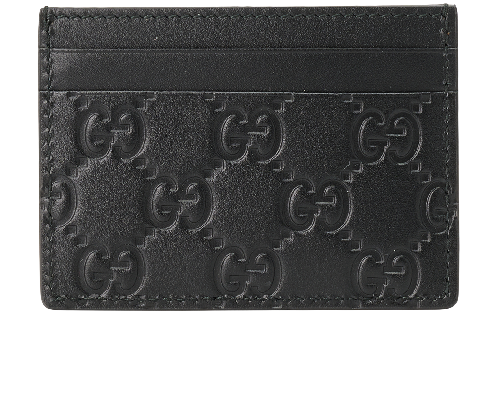 GG Emblem reinterprets the House's history of elegance and craftsmanship, in smooth leather embossed with the GG motif. Part of the latest line of small accessories, this card case is presented in embossed GG leather.Black embossed GG leather. Black taffeta lining. Outside: 6 card slots. Weight: 81g, approximately.