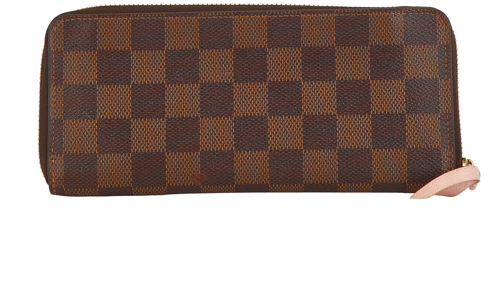 This item is in good overall condition with some obvious signs of use such as small black stains next to the zipper.