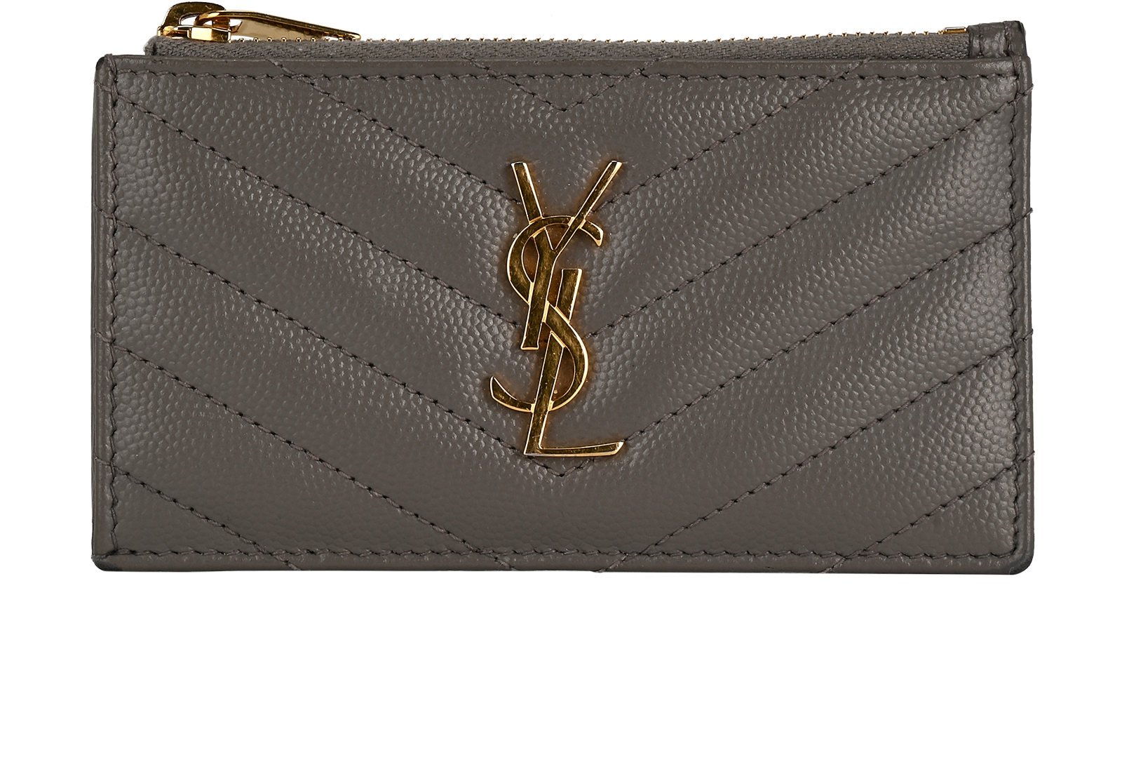 Saint Laurent Cassandre Matelasse Zip Card Case, £250, Accessories, Taupe, Leather, Front view