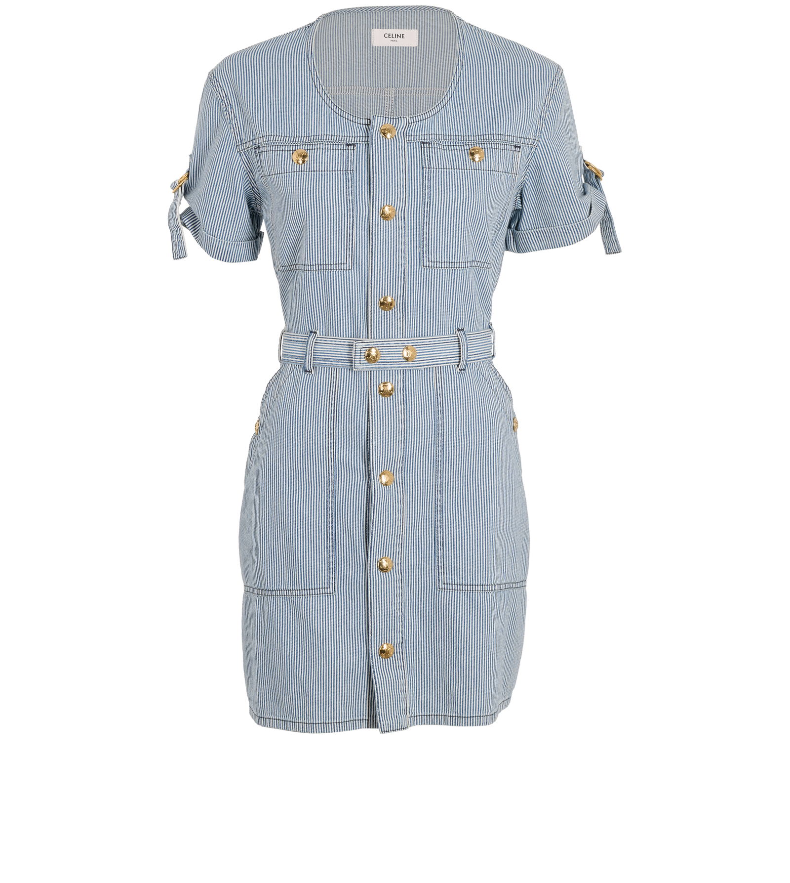 Celine Belted Stripe Mini Dress, £350, Clothing, Blue/White, Cotton, Front view