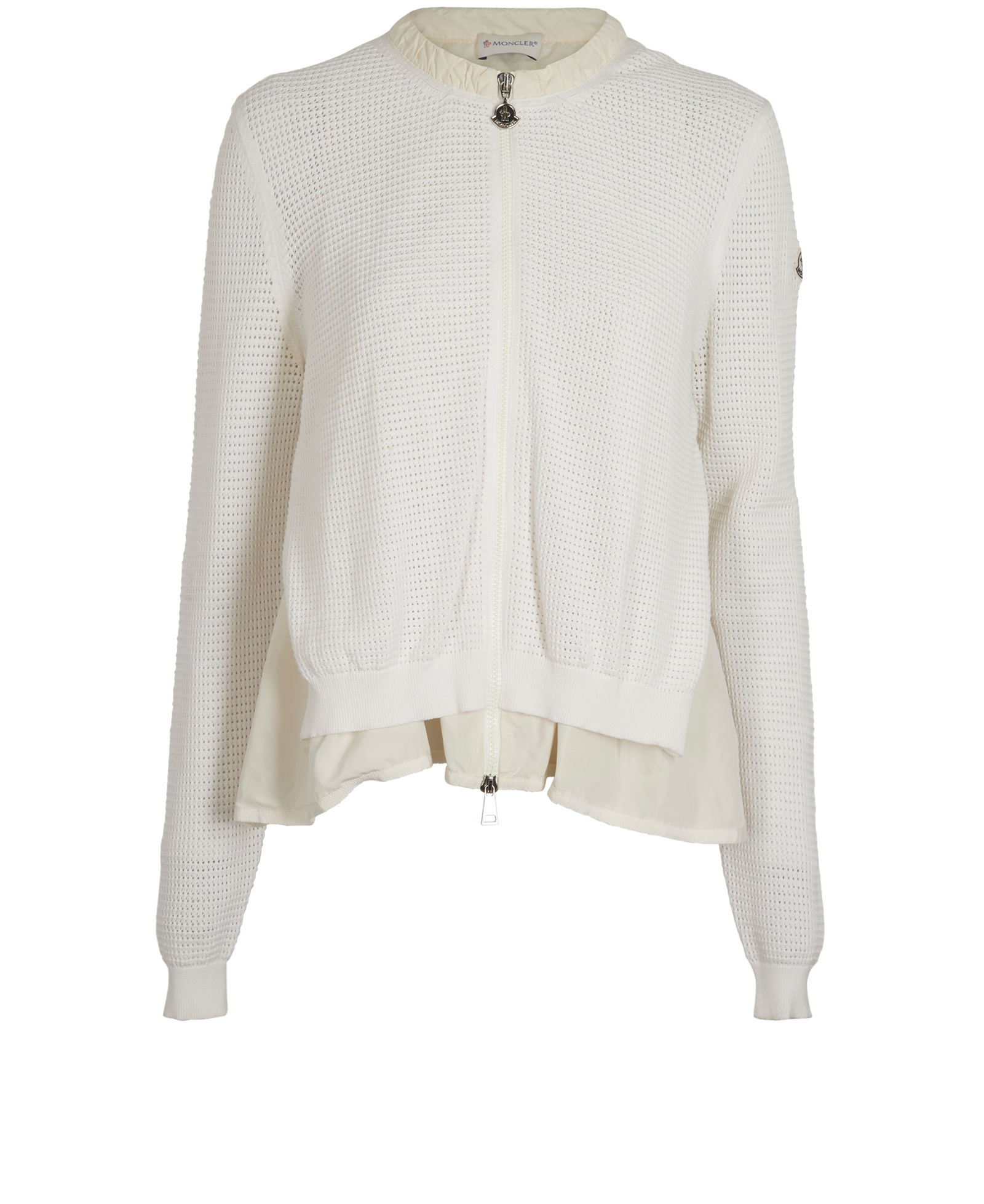 Moncler Knitted Bomber Jacket, £220, Clothing, White, Polyester (Polymer), Front view