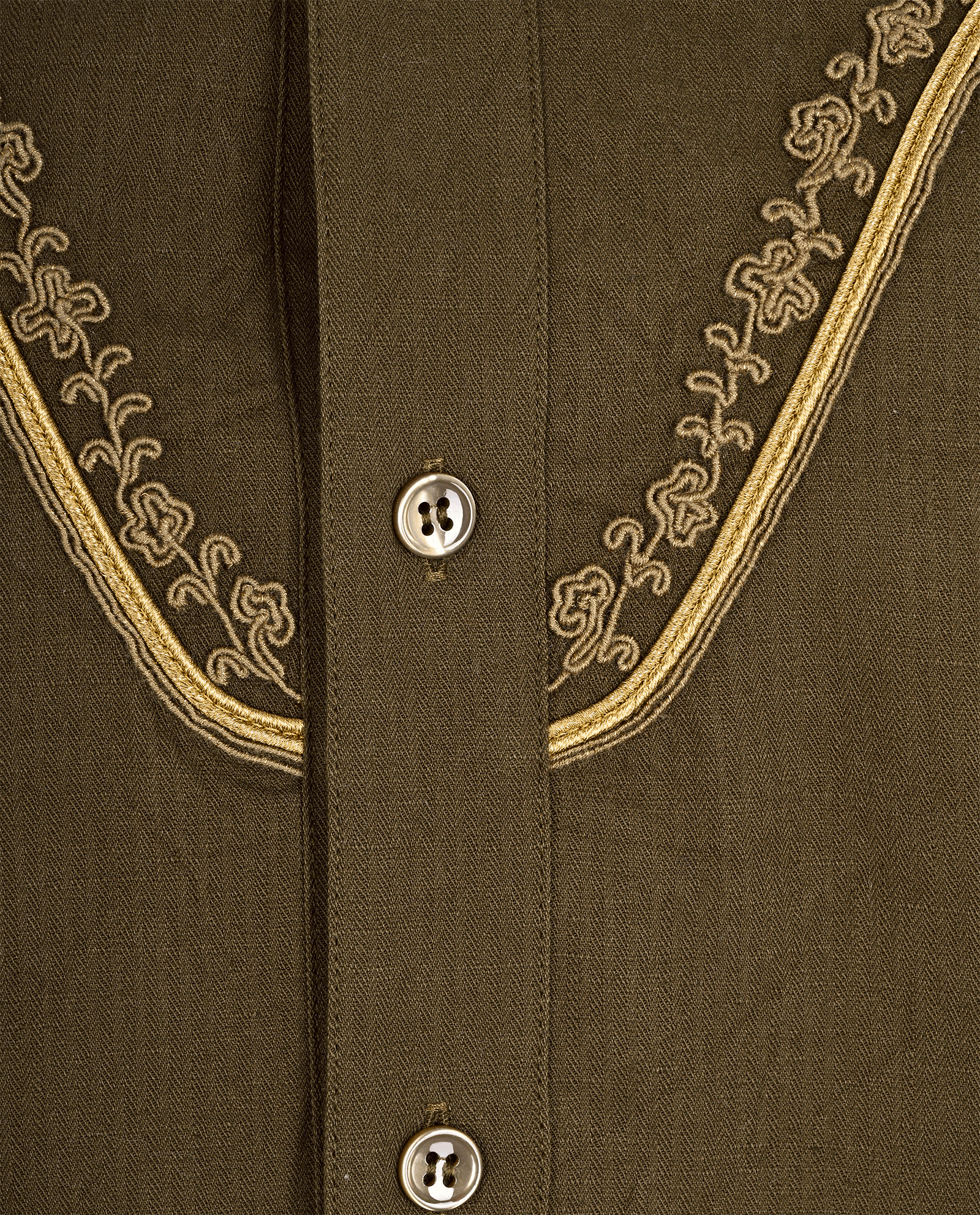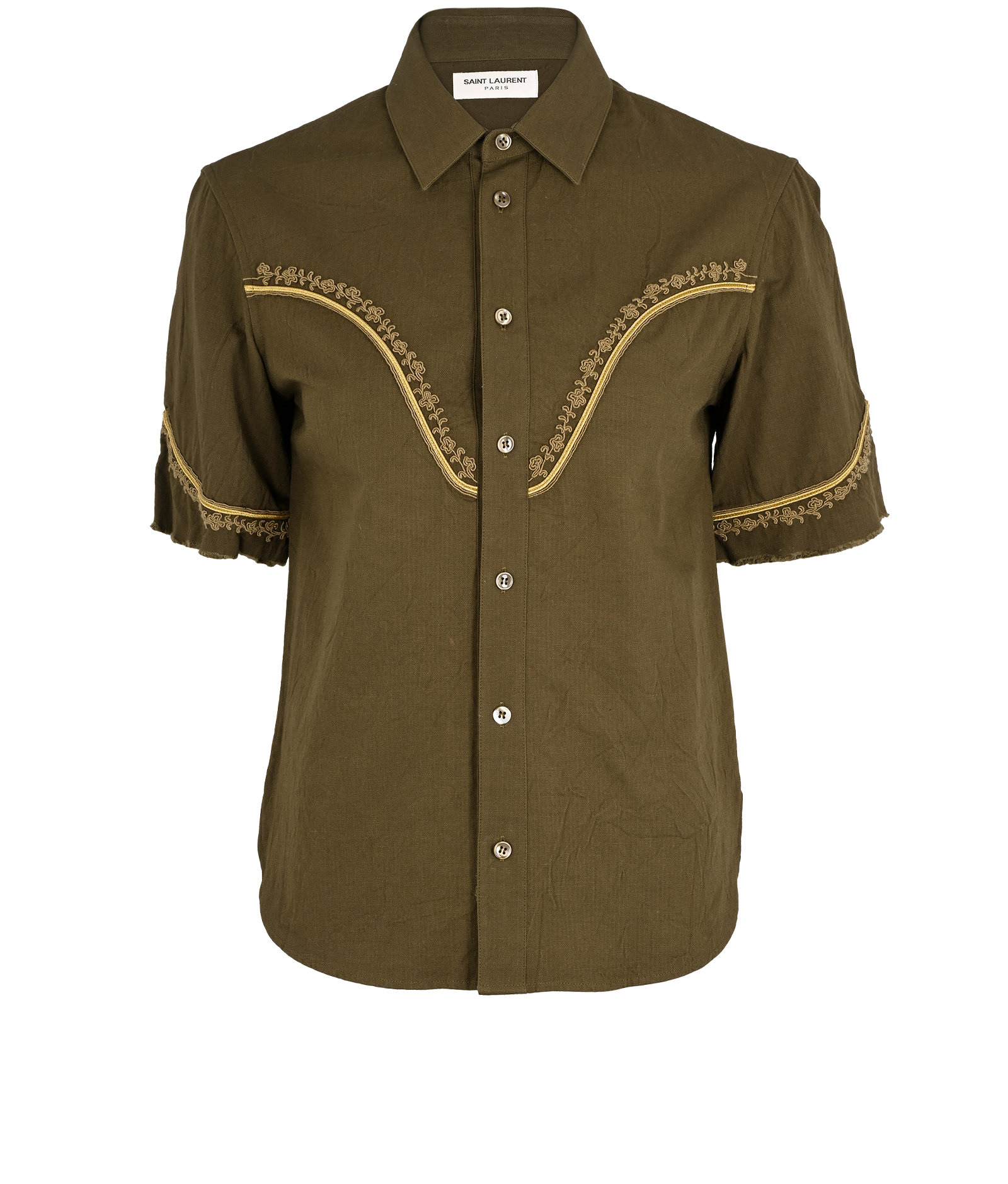 Saint Laurent Embroidered Raw-Trim Shirt, £230, Clothing, Green, Cotton/Linen, Front view
