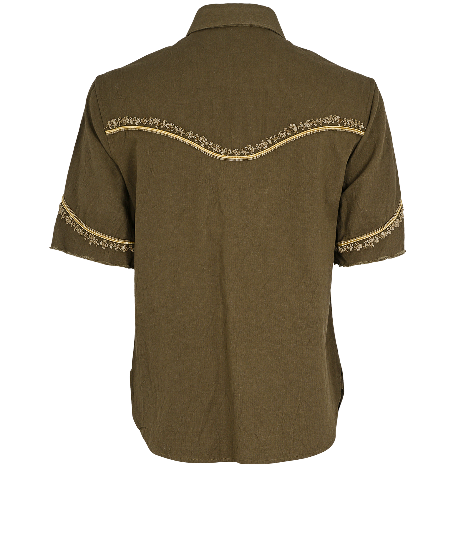 Saint Laurent Embroidered Raw-Trim Shirt, £230, Clothing, Green, Cotton/Linen, Back view