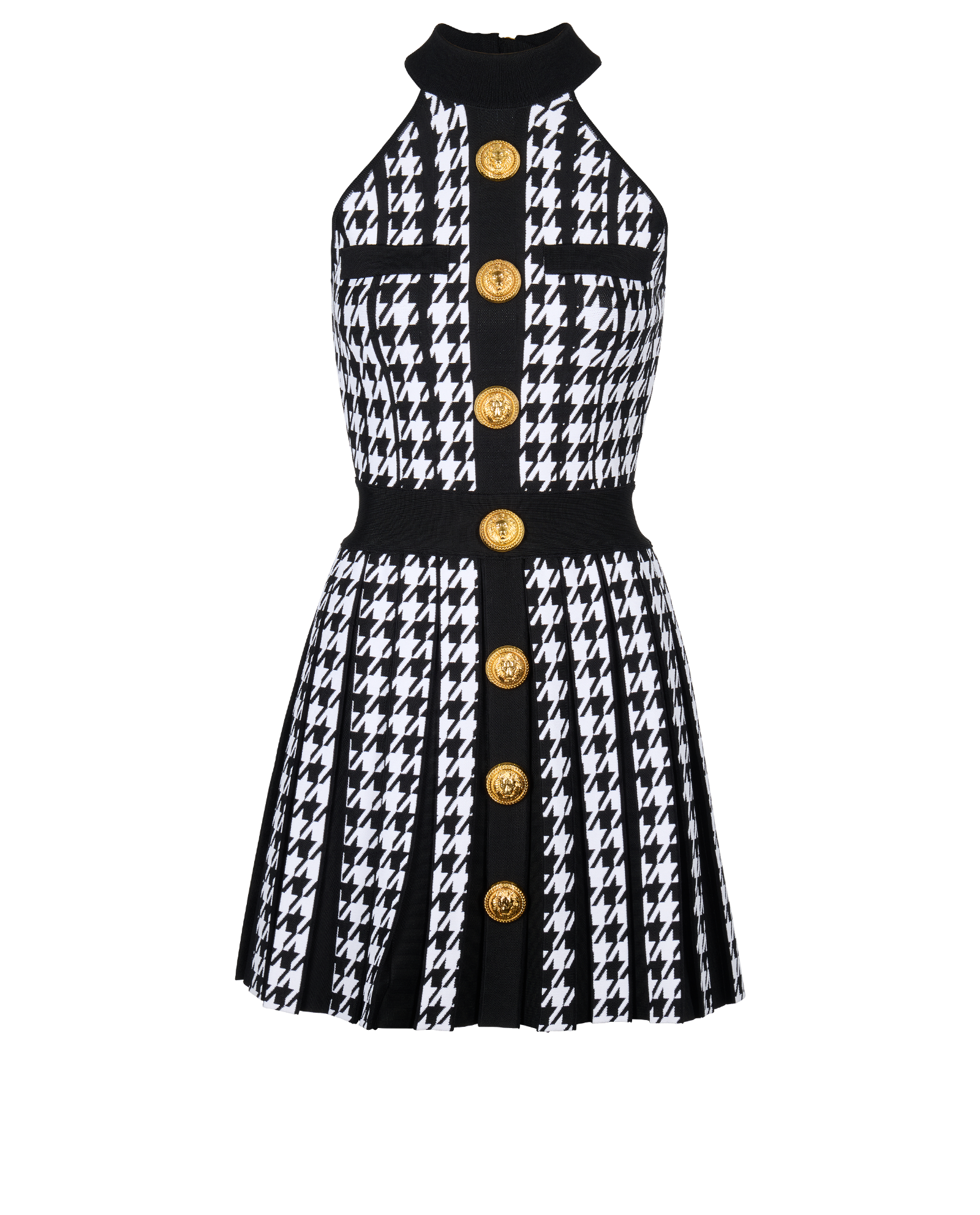 Balmain Houndstooth Pleated Dress