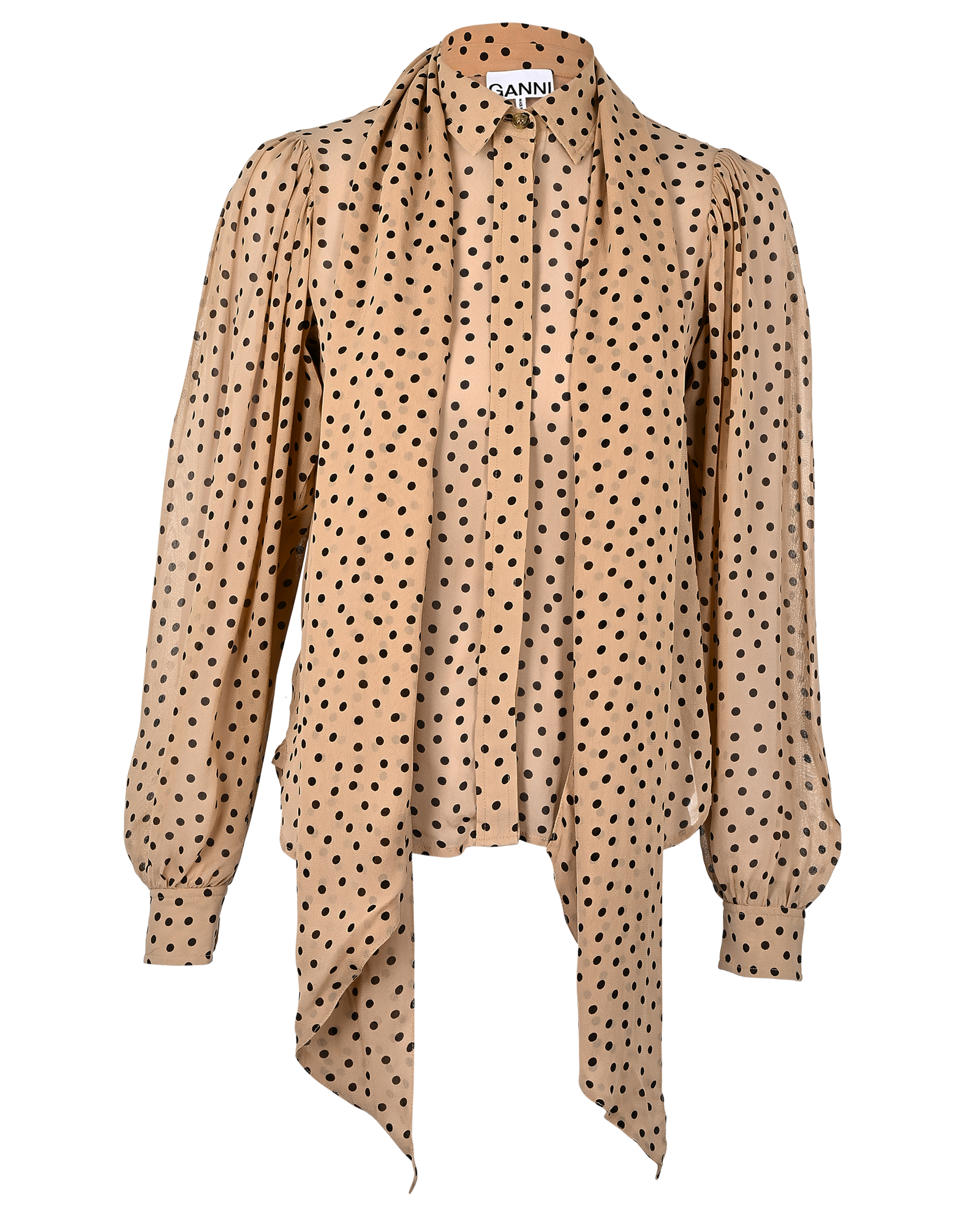 Ganni Polka Dot Tie-Neck Blouse