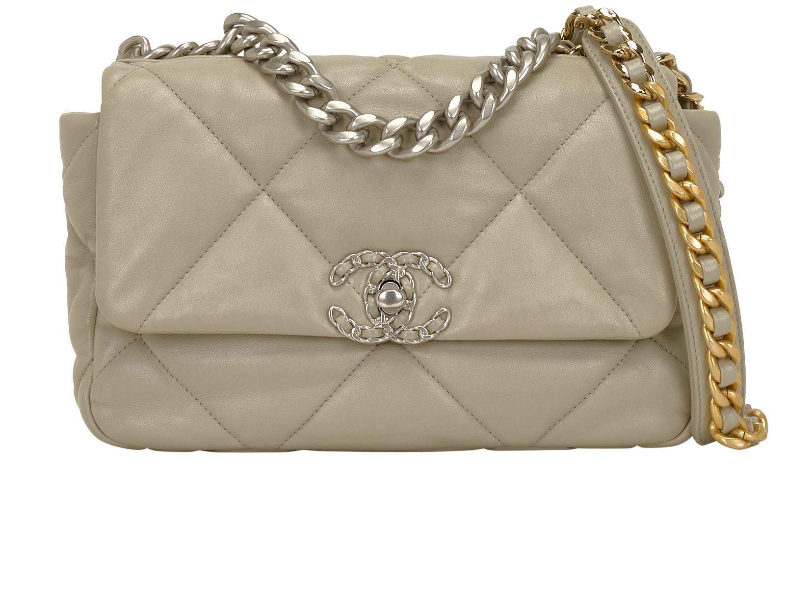 The Chanel 19 Bag epitomises a harmonious blend of vintage charm and modernity. Introduced by Karl Lagerfeld in 2019, it pays homage to the classic designs Coco Chanel presented in 1983. The bag features a soft, puffy silhouette, adorned with the iconic "Coco Chanel" turn-lock closure, interlocking CC clasp, and woven chain strap. Its style represents a departure from the traditional Chanel flap bag, offering a more relaxed and contemporary aesthetic. The Chanel 19 Bag has swiftly become a beloved icon among fashion enthusiasts, celebrating the brand's heritage while infusing a fresh and dynamic spirit into the world of luxury handbags.