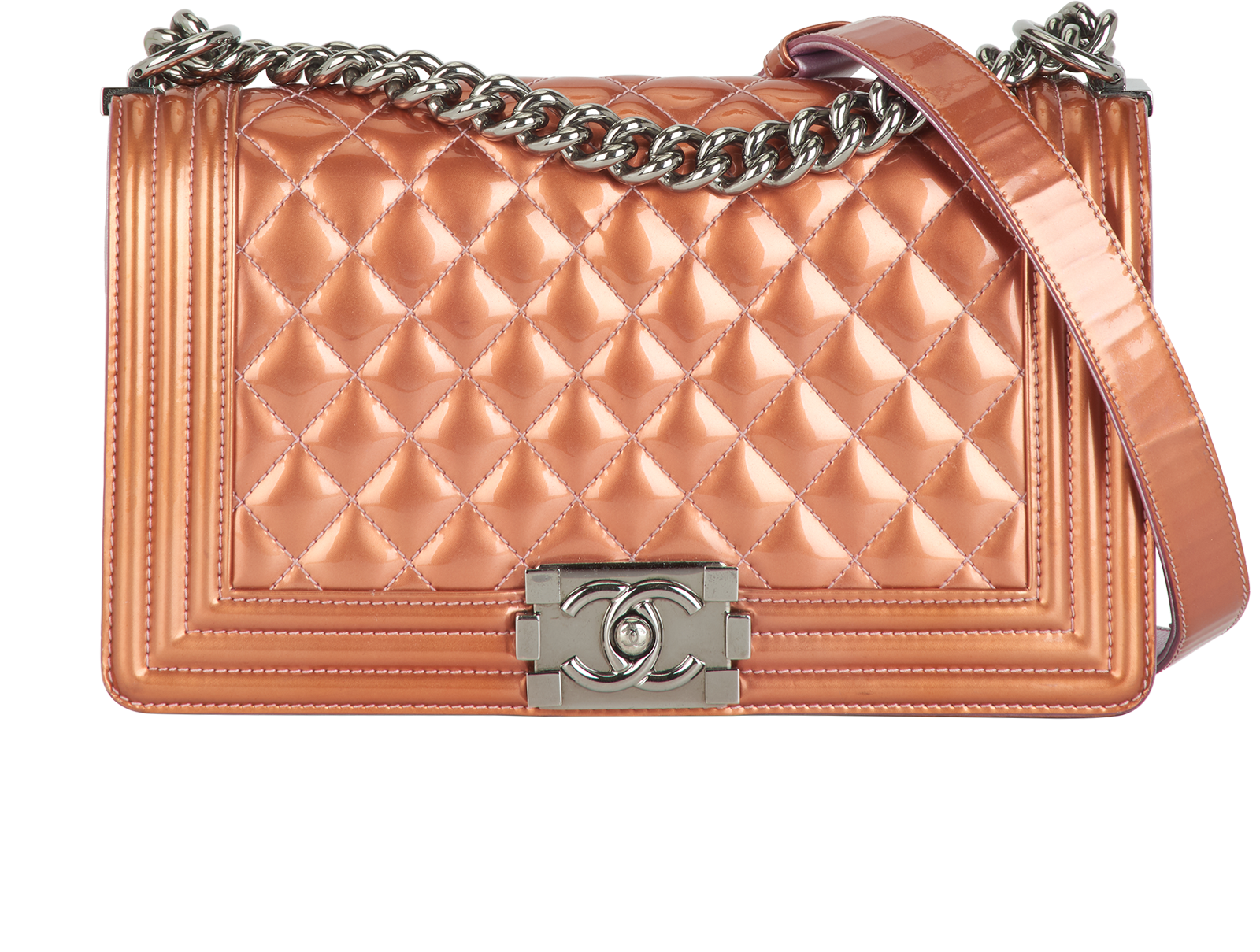 The Chanel Boy Bag epitomises edgy sophistication with a modern twist. Introduced by Karl Lagerfeld in 2011, it is named after Coco Chanel's first love, Boy Capel. The bag features a structured yet slightly boxy shape, a distinctive rectangular clasp, and a chunky chain strap. Its design incorporates a blend of masculine and feminine elements, offering a rebellious yet elegant style. The Boy Bag's versatility and contemporary appeal have made it a favourite among fashion-forward individuals. With its nod to the brand's heritage and modernity, the Chanel Boy Bag has quickly become an iconic and coveted accessory in the world of luxury fashion.
