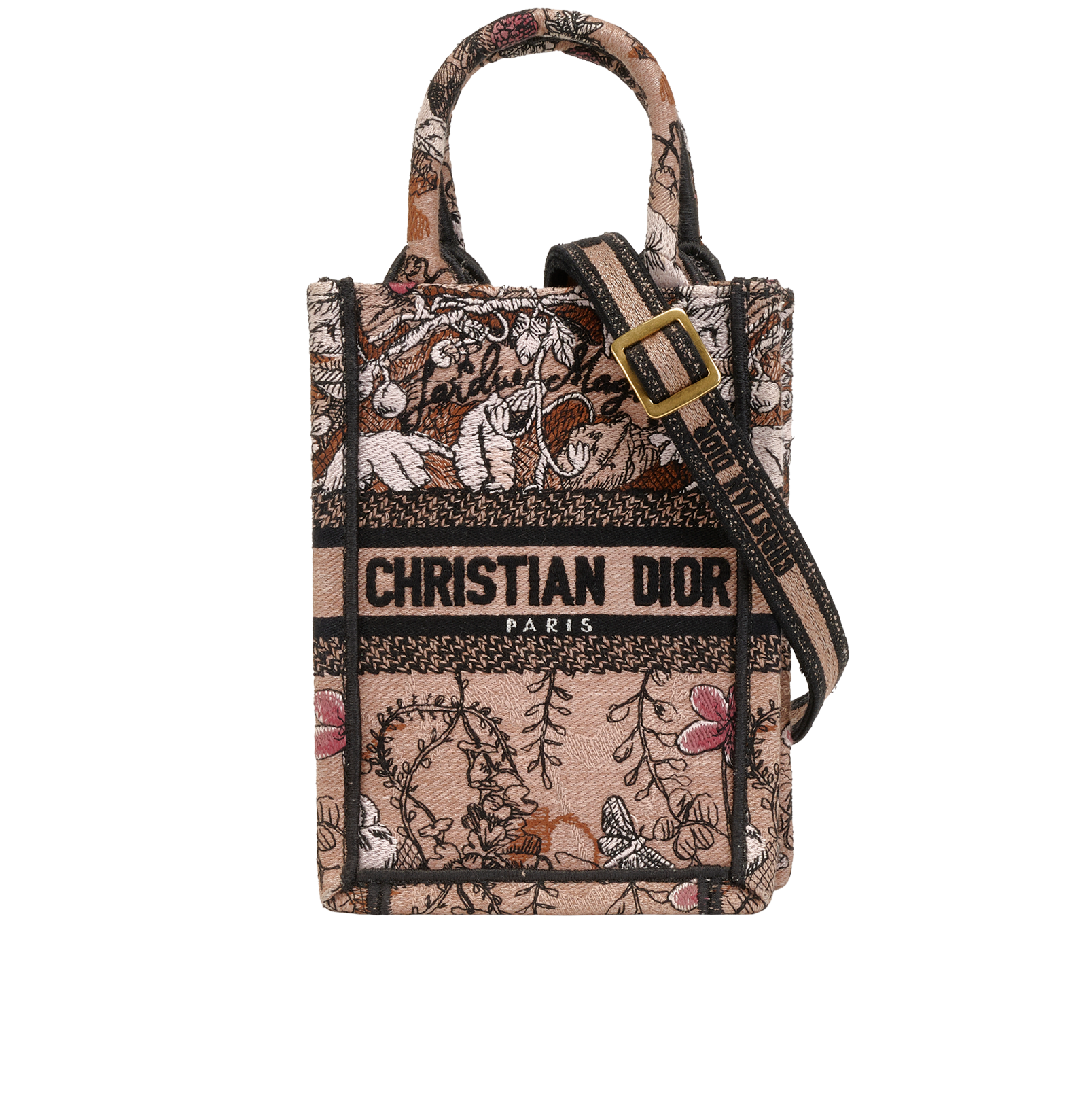 Mini Jardin Magique Vertical Book Tote, £950, Handbags, Black/Pink, Canvas, Front view