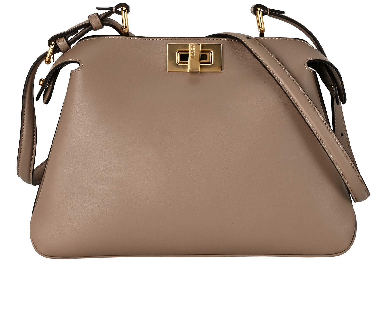 Iconic medium Peekaboo Soft bag, the epitome of Fendi craftsmanship and creativity. A timeless icon, the Peekaboo was created in 2009. Like the children’s game it takes its name from, peek-a-boo, the bag plays with the beauty showcased on the outside and that concealed on the inside. Presented at the Fall-Winter 2024/25 fashion show, it features a soft look that enhances the bag’s “smile” on the front panel. Made of dove grey calfskin with a silky finish. Featuring a suede-lined interior with two internal compartments divided by a stiff partition and a leather internal pocket with gold-coloured FENDI logo print. Leather covered an aluminium bar to lighten the weight of the bag, gold-finish clasp and metalware. Decorated with the iconic twist lock on both sides. It can be carried on the shoulder or by hand thanks to the adjustable handle. Made in Italy Measurements: Strap length (min) : 32 cm Strap length (max) : 48 cm.