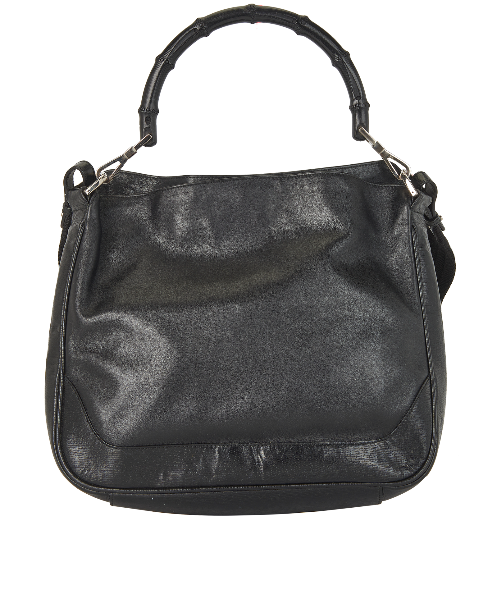 This item is in good overall condition with obvious signs of use, such as small marks on the leather and scratches on the hardware.