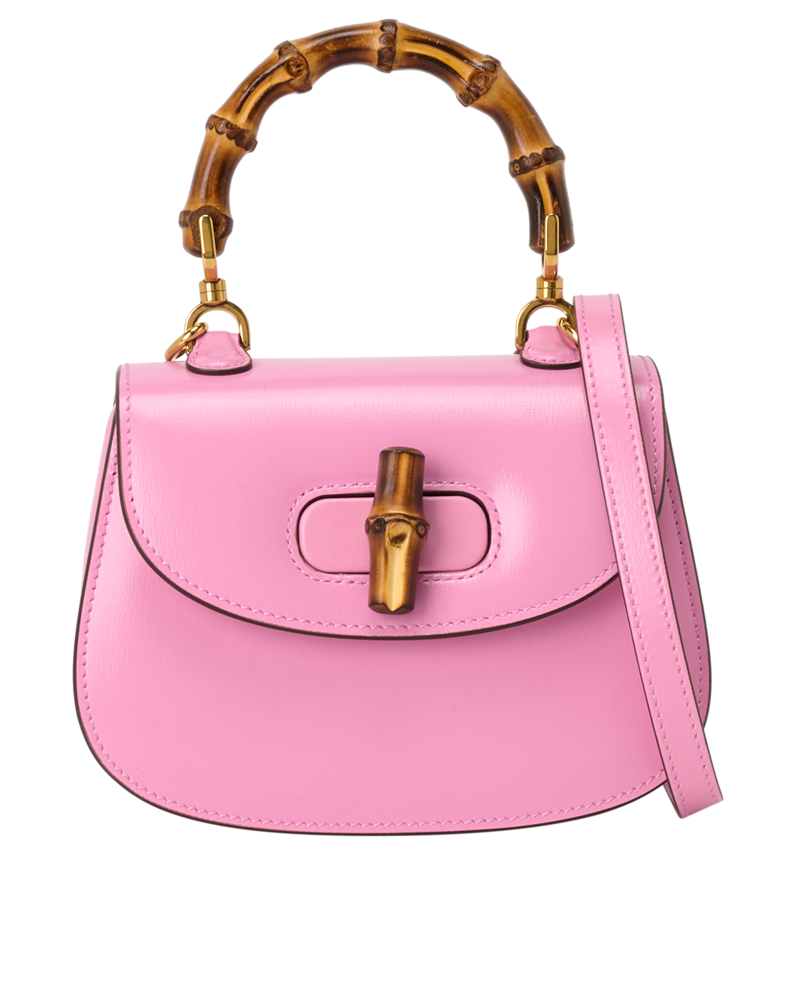This gorgeous mini bamboo, is truly a gem, adorned in authentic bamboo, each cut is unique, truly every bag is a one of a kind piece, same silhouette different charm.This bag also comes with two cross body straps, a contrasting pink leather strap, and the iconic gucci multi colour strap.