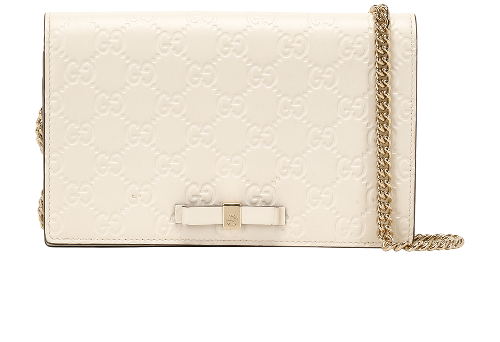 This beautiful day to night bag, has the perfect motifs, boasting the gucci print alongside the white leather, tied together with the perfect mini bow, this piece is surely to win hearts over.