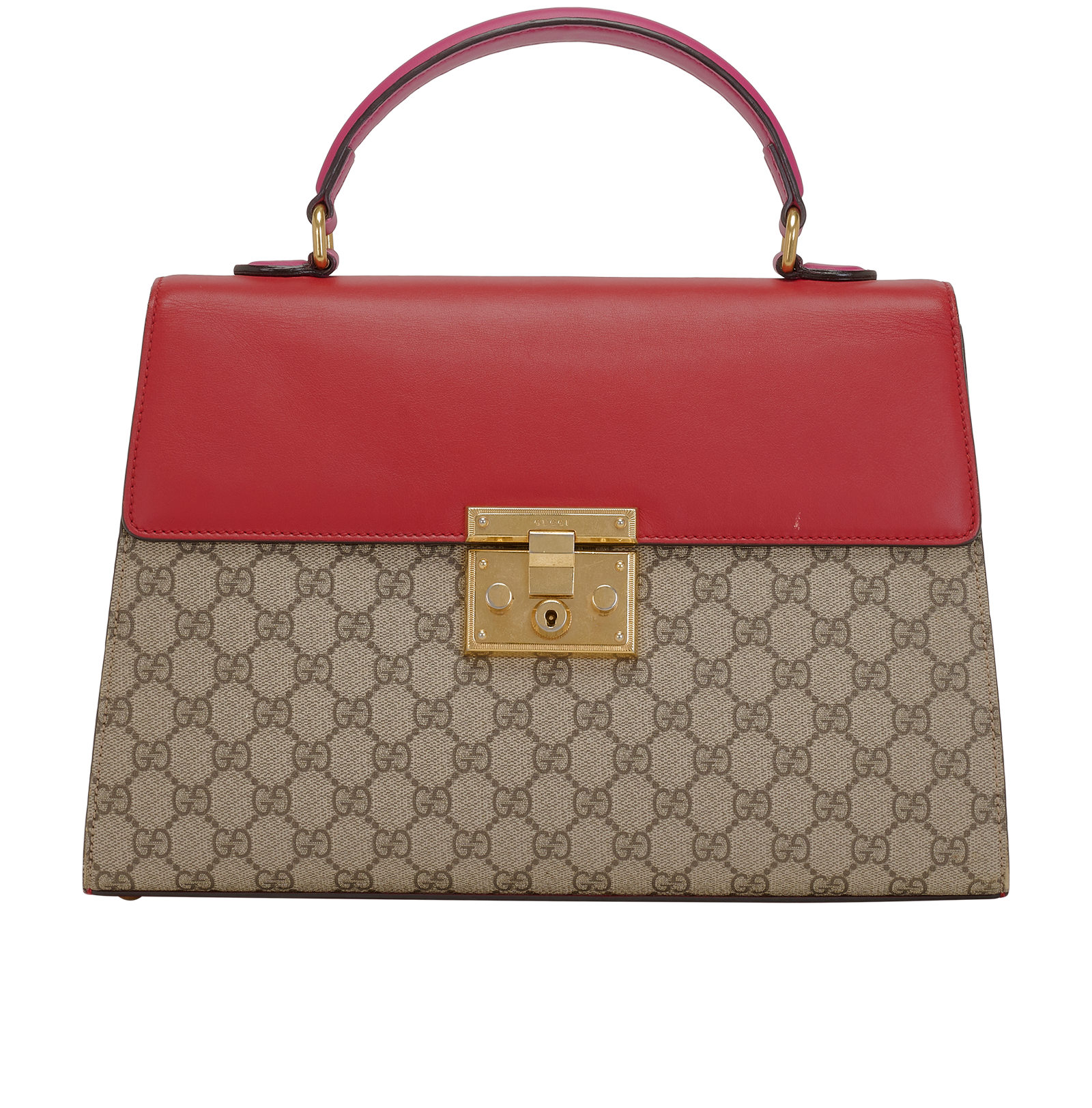 Padlock Top Handle, £1,100, Handbags, Beige/Red, Canvas/Leather, Top view