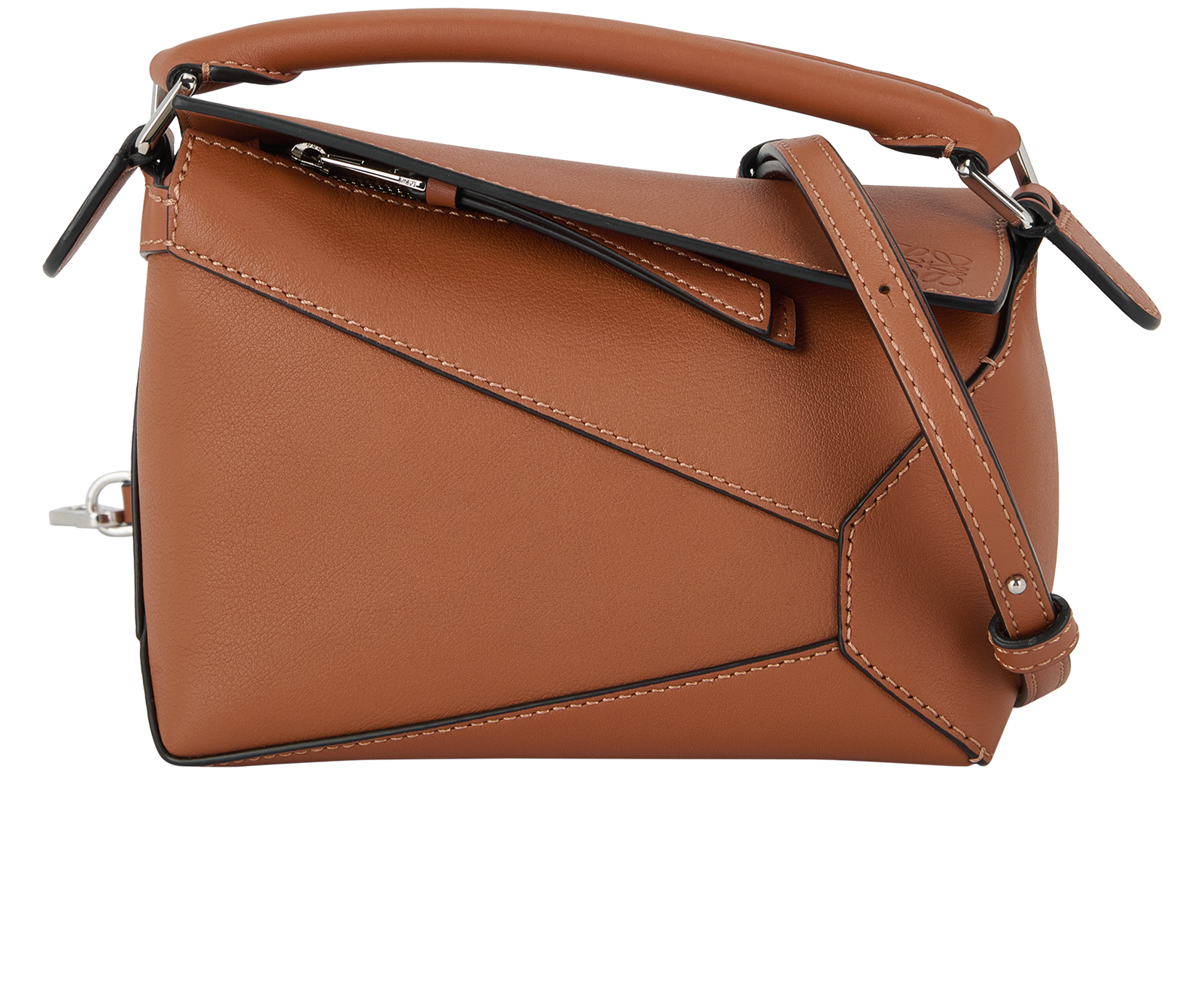 The Puzzle Edge is defined by its distinctive geometric lines and its cuboid form. It differs to the classic construction in its overlapped panels with single stitch lines. This mini version is crafted in classic calfskin. Shoulder, crossbody or hand carry Detachable and adjustable strap Zip closure with calfskin pull Herringbone cotton canvas lining Embossed Anagram
