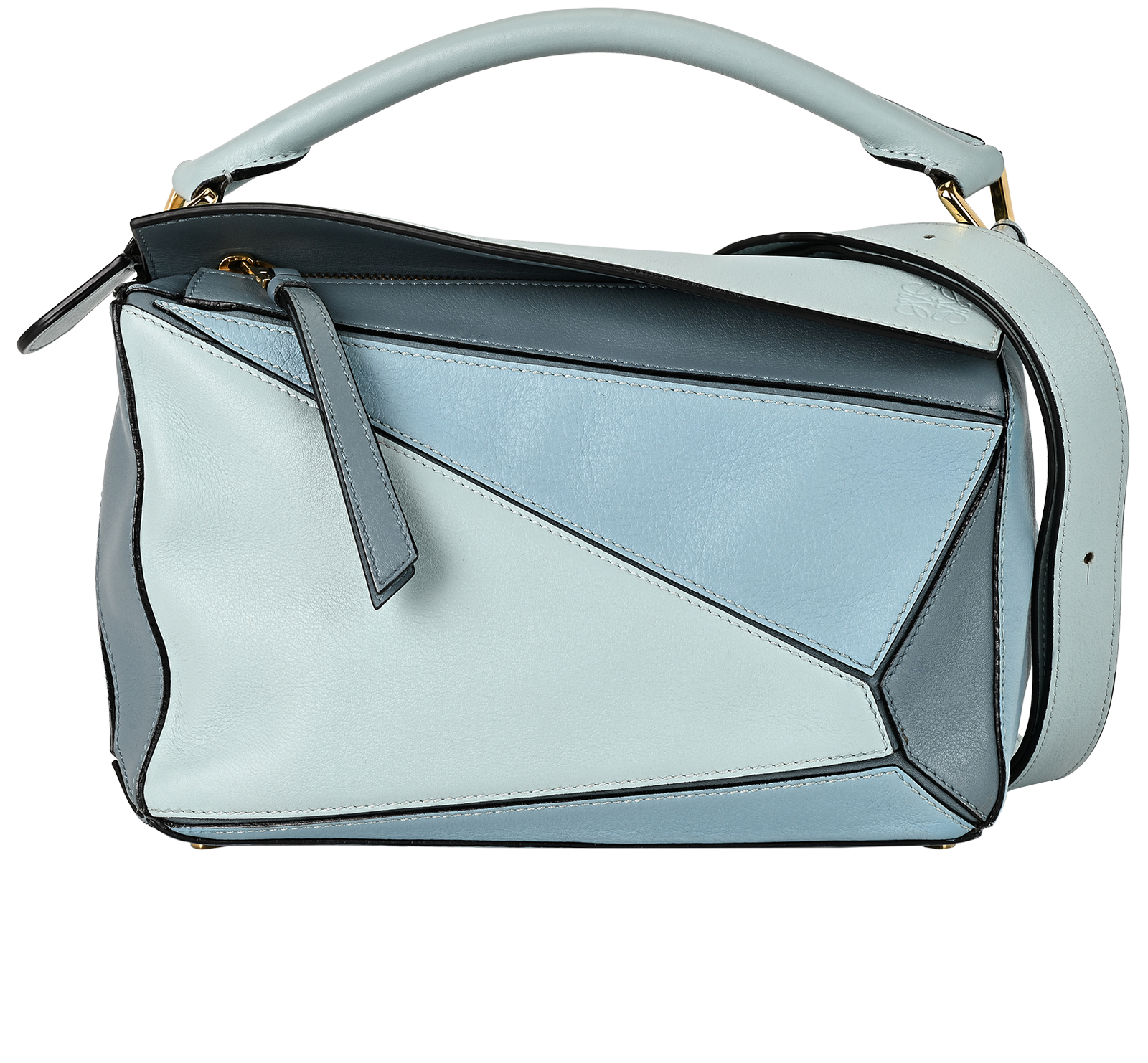 The Puzzle Edge is defined by its distinctive geometric lines and its cuboid form. It differs to the classic construction in its overlapped panels with single stitch lines. This medium version is crafted in classic calfskin.