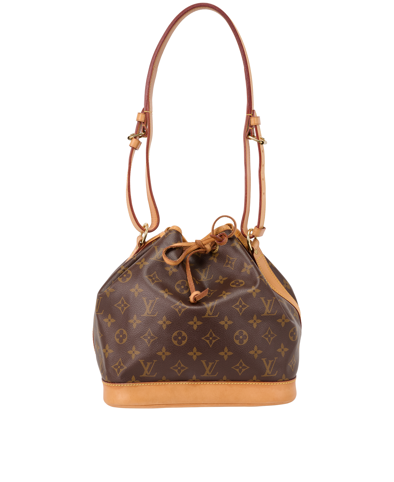 The Petit Noé bucket bag harks back to a design from 1932. A Champagne producer asked Gaston-Louis Vuitton to develop a sturdy, stylish bag in which he could transport five bottles of bubbly. This compact version in body-friendly Monogram canvas retains key features of the original, such as the iconic shape, generous capacity and drawstring closure, but is made for modern life. The leather strap adjusts for comfortable shoulder or crossbody wear. This reference is either made in France, Spain or Italy.