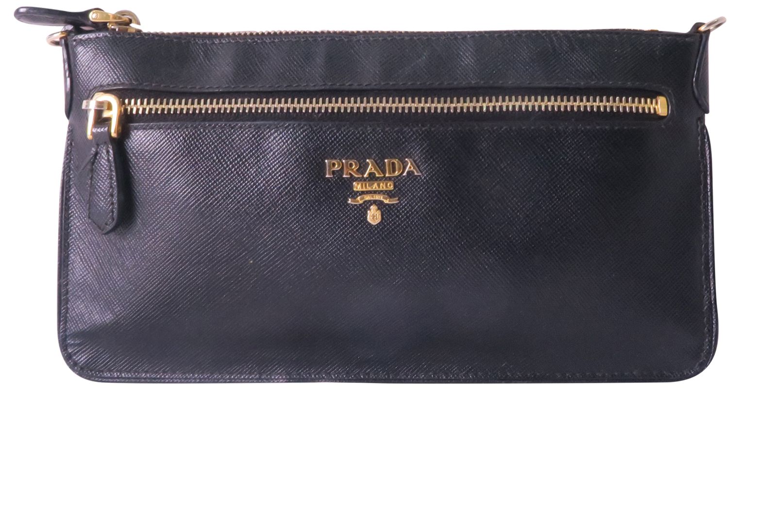 This Prada Saffiano bag has no major signs of wear and it's in good condition. The hardware has lost colour but nothing major. The interior is in good condition but it has a open cut by the zipper nothing major but noticeable.