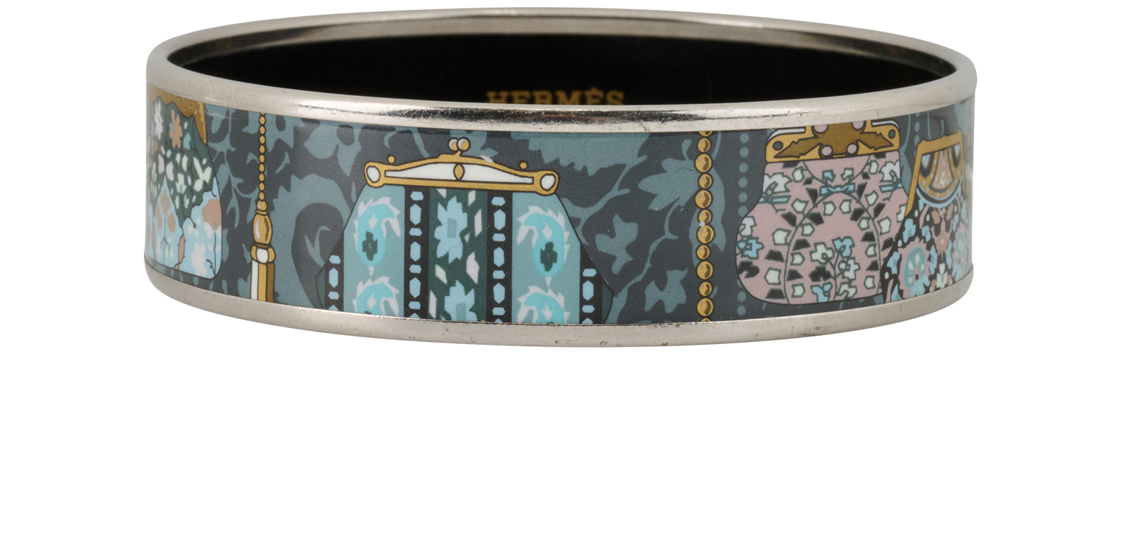 This is a beautiful piece by Hermes, the purse print bangle,is a beautiful day to night piece, adorned in a gorgeous floral print, inspired by different purses housed by Hermes, truly a gem to add to the collection.