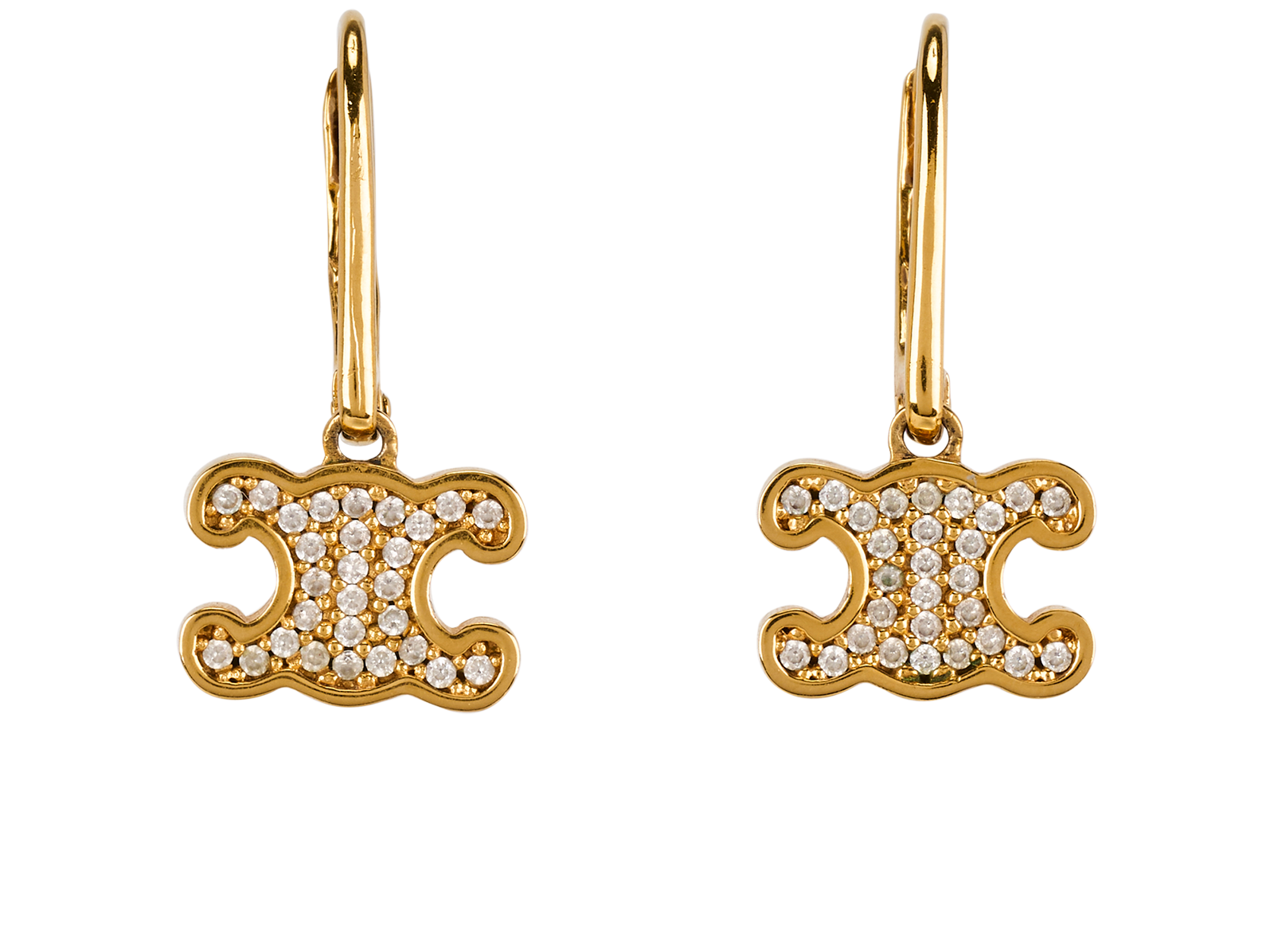 Celine Triomphe Rhinestone Earrings, £350, Jewellery, Gold, Brass, Front view