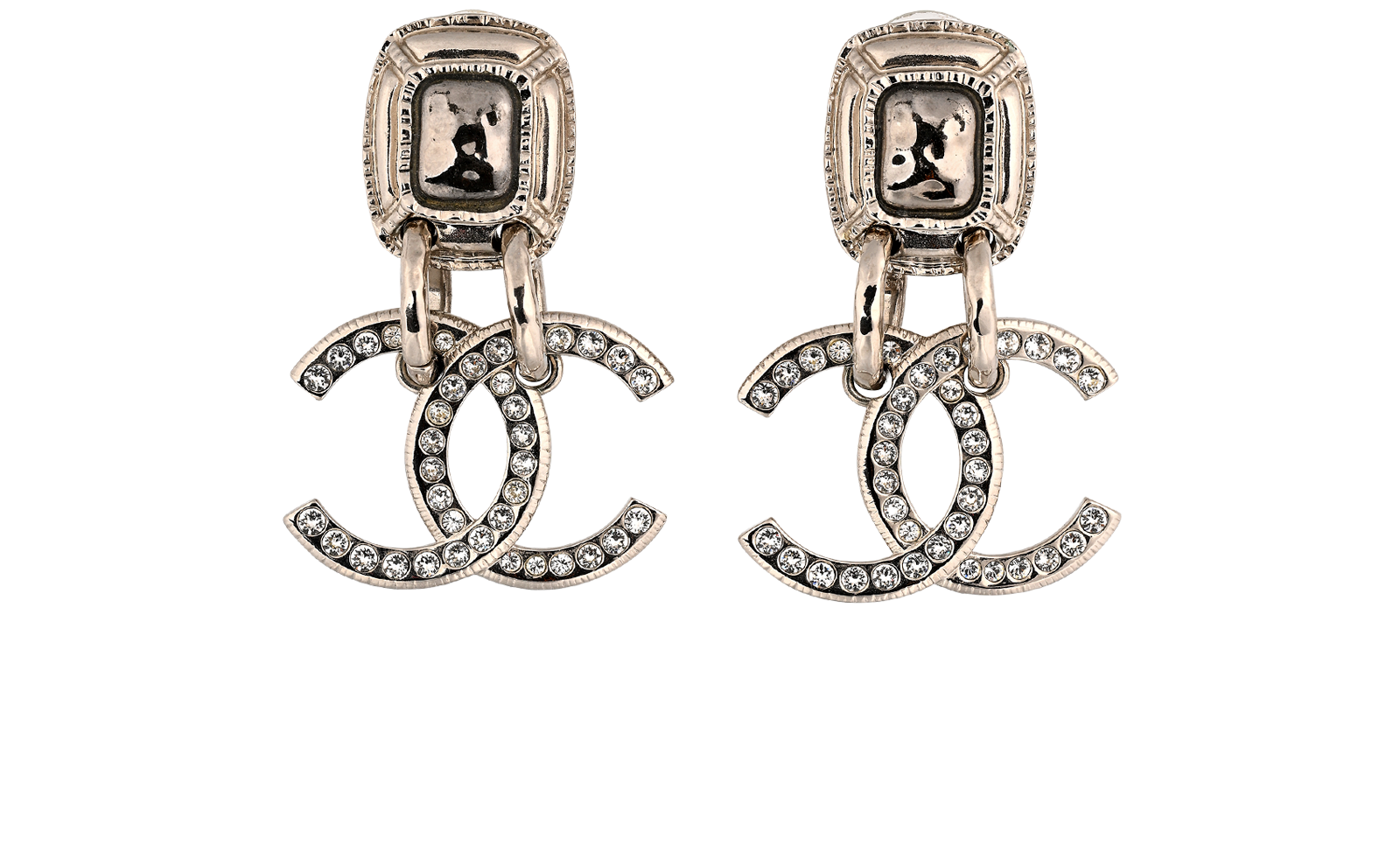 Chanel A22A CC Logo Earrings, £550, Jewellery, Silver, Brass, Front view