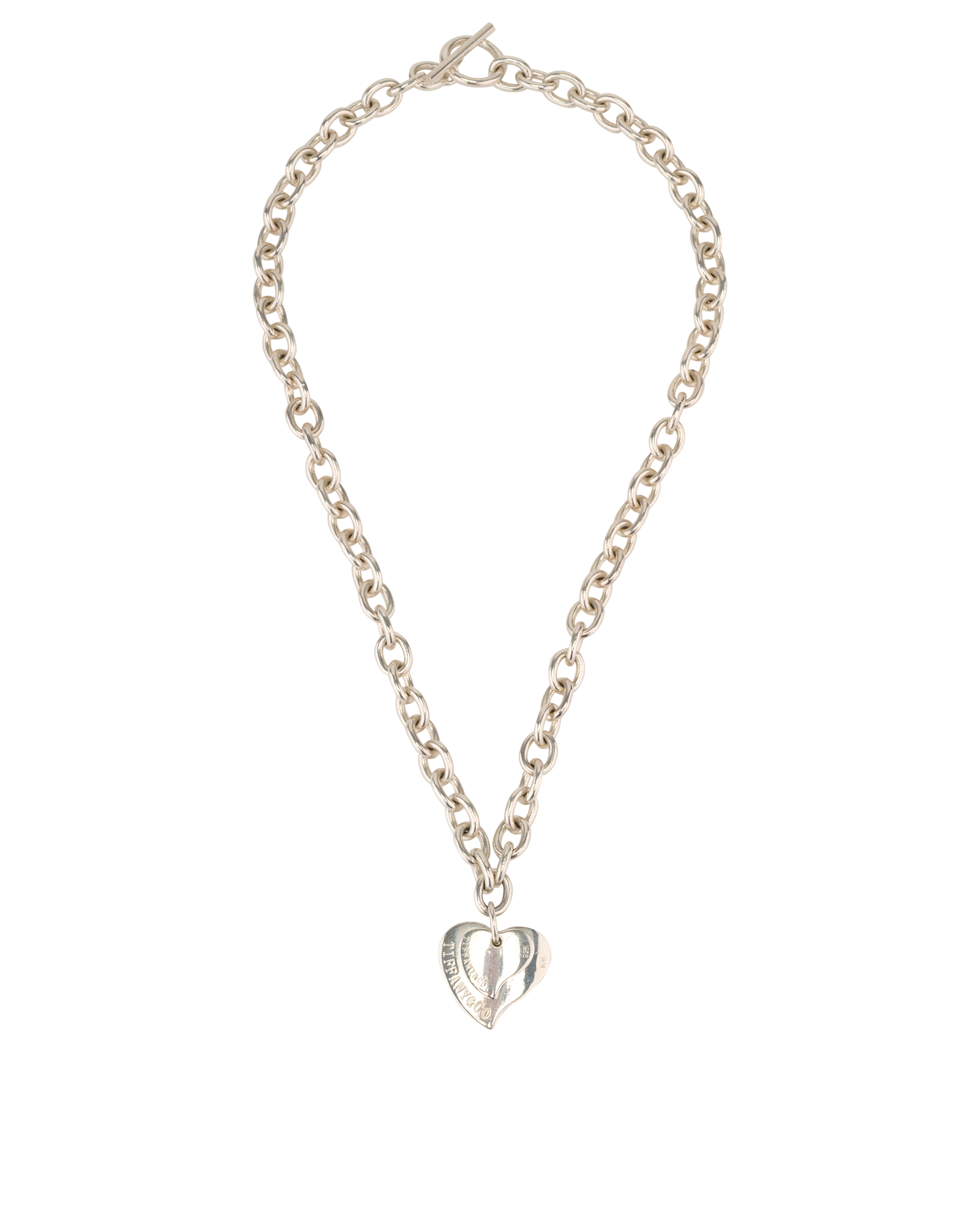 Tiffany & Co Double Heart Toggle Necklace, £350, Jewellery, Silver, Sterling Silver, Front view