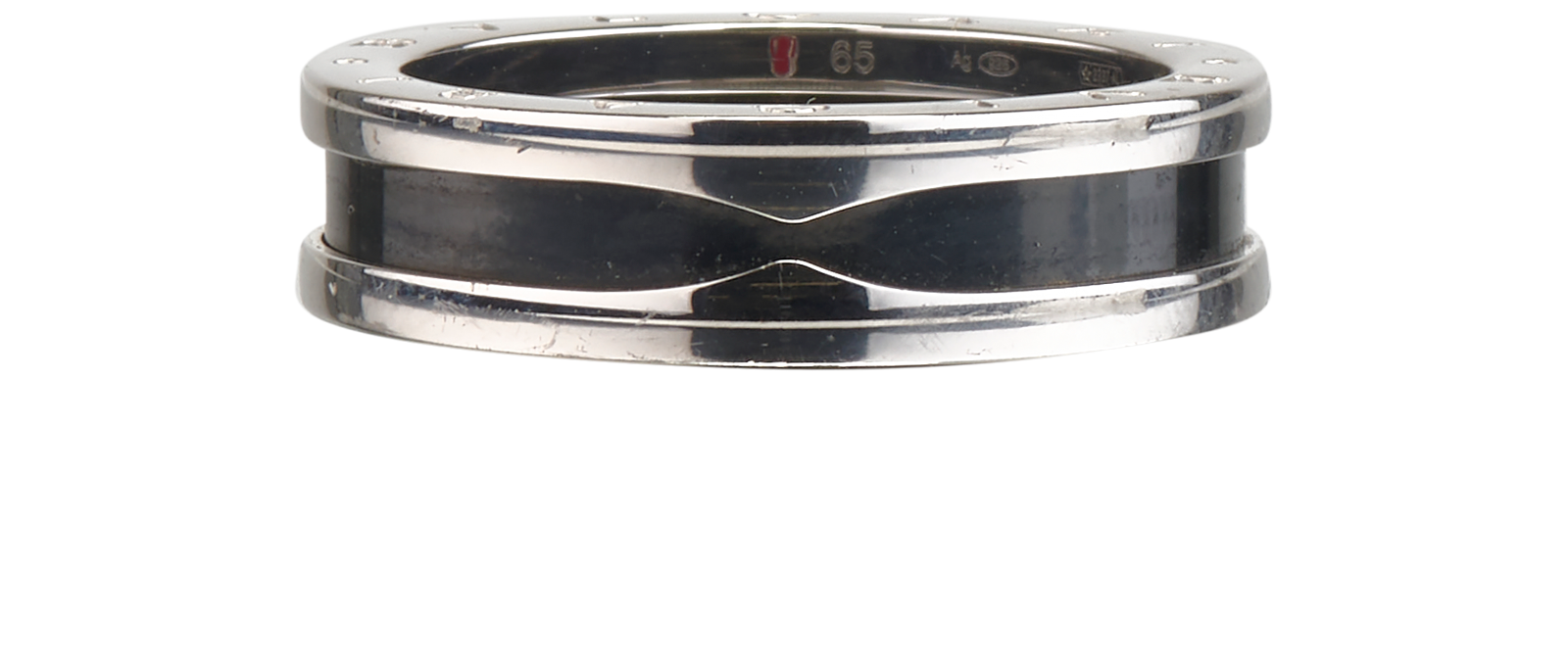 Bvlgari one-band sterling-silver and black ceramic ring.100% sterling silver, ceramic Slips on. Ceramic base, polished hardware, monogram embossment. Wipe with a clean, dry cloth. Made in Italy.