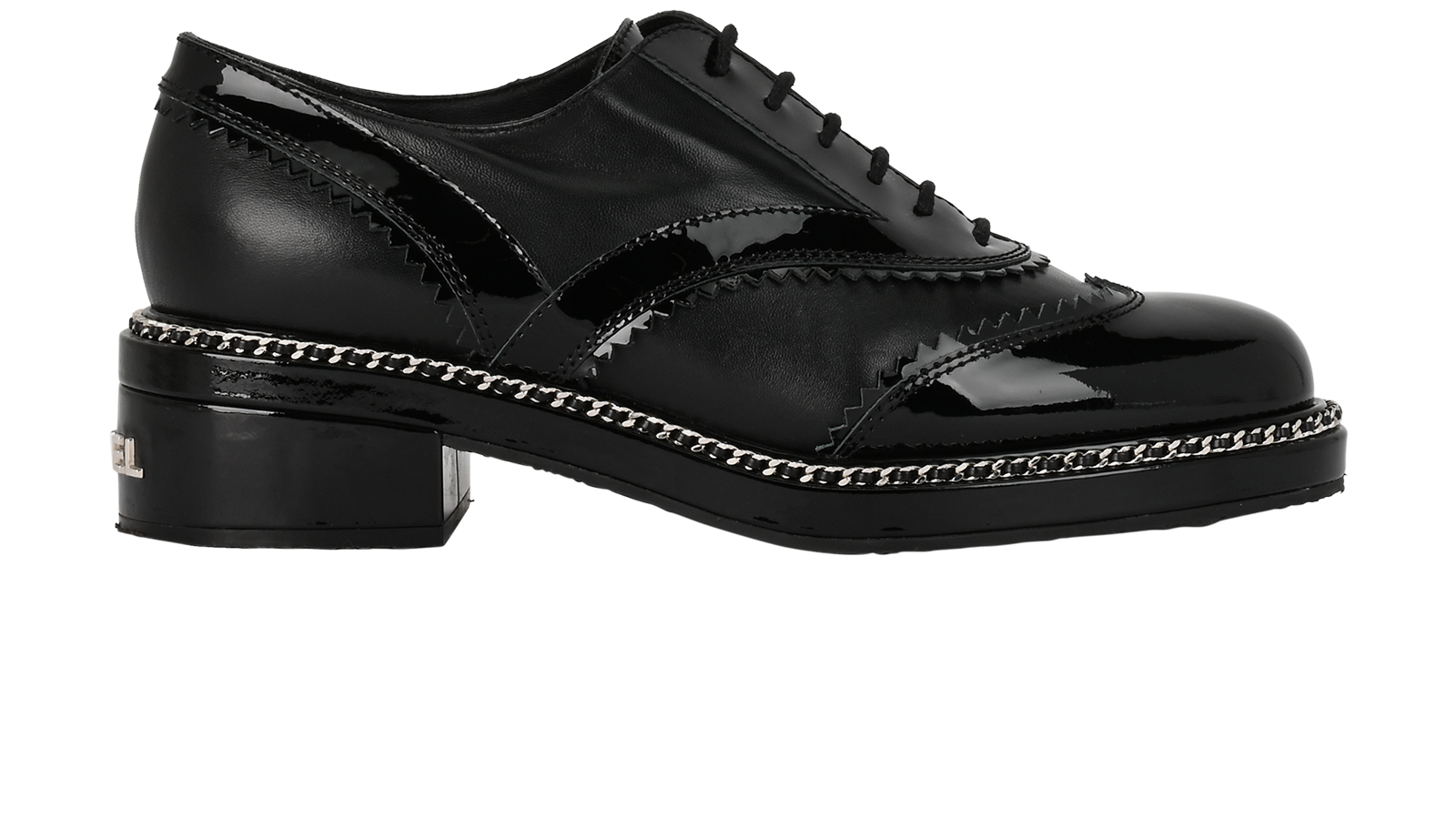 Chanel Logo Derby Shoes, £395, Shoes, Black, Leather/Patent Leather, Side view