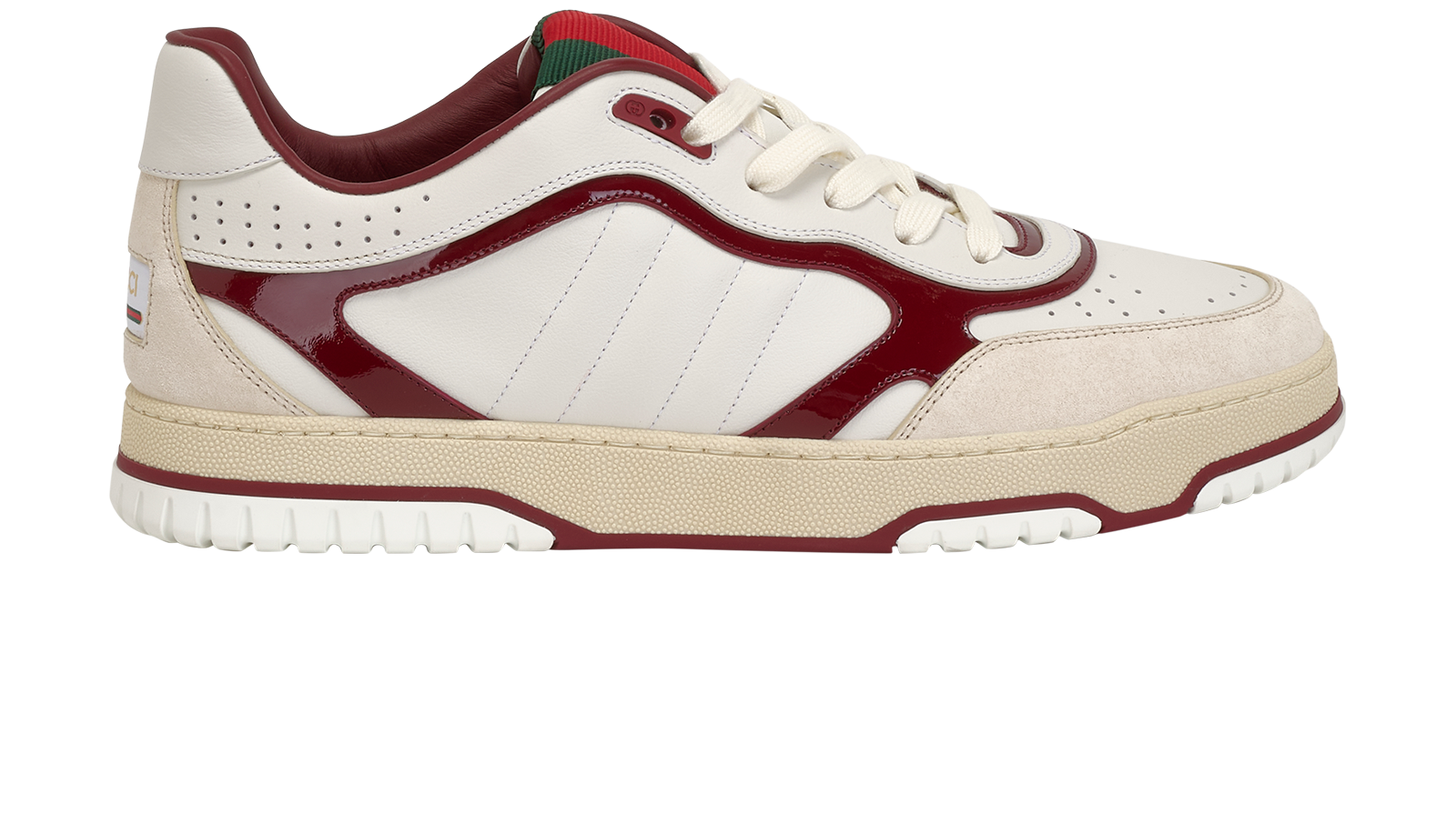 Gucci Re-Web Low-Top Trainers, £350, Shoes, Burgundy/White, Leather, Side view